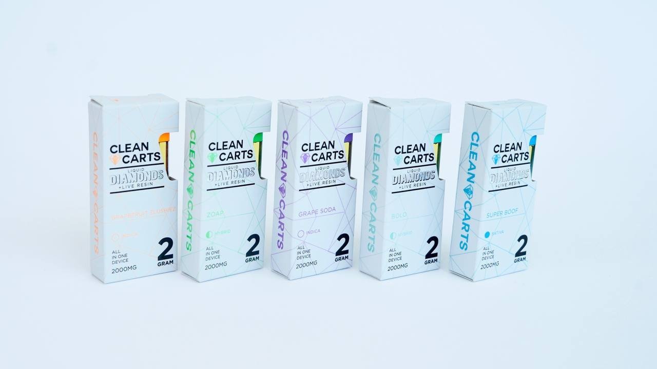 Clean Carts – Purple Box (2g Disposable): Bold purple flavors and clean, potent hits ready whenever you are.